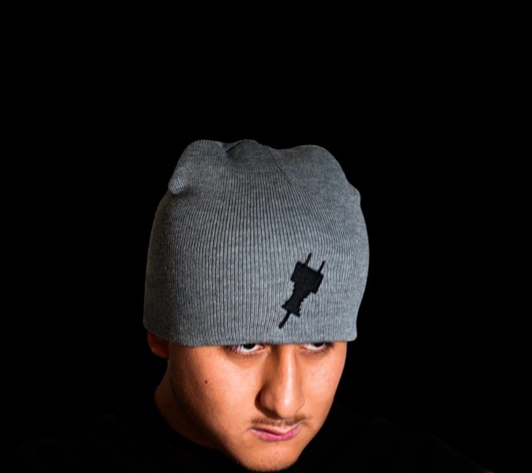 Grey Plug Slouch Beanie